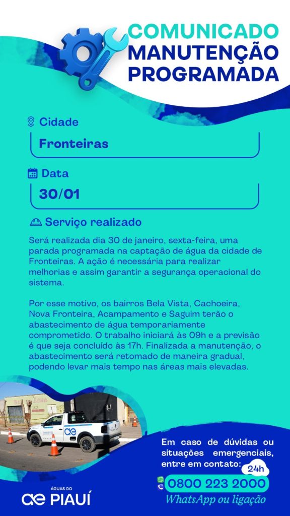 Uma informação importante é que os clientes que estão com o fornecimento de água suspenso nos 36 municípios assumidos pela empresa podem procurar os canais de atendimento da Águas do Piauí para solicitar o religamento, que é realizado sem qualquer custo. A concessionária esclarece ainda que não recebe nem cobra débitos referentes às operadoras anteriores, já que as pendências financeiras antigas não foram transferidas para a empresa.