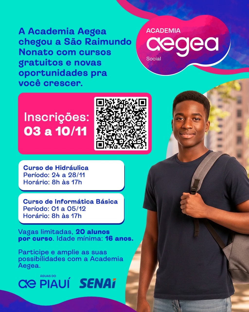 A Escola de Saneamento Social, iniciativa do grupo Aegea, do qual faz parte a Águas do Piauí, juntamente com o SENAI, abre inscrições para dois cursos presenciais gratuitos para a população de São Raimundo Nonato e região. São 40 vagas distribuídas entre as formações de Fundamentos de Hidráulica e Informática Básica, com carga horária de 40 horas cada e turmas de 20 alunos.