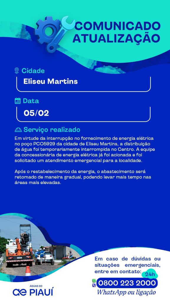 A Águas do Piauí é a responsável pelos serviços de abastecimento de água e esgotamento sanitário nos 224 municípios do Piauí.