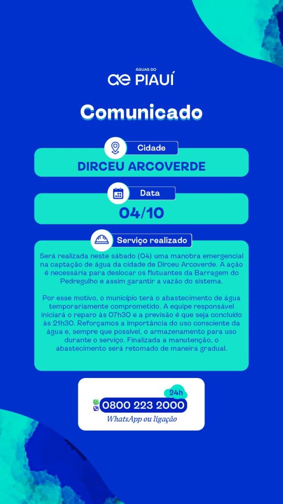 A Águas do Piauí é a responsável pelos serviços de abastecimento de água e esgotamento sanitário nos 224 municípios do Piauí.