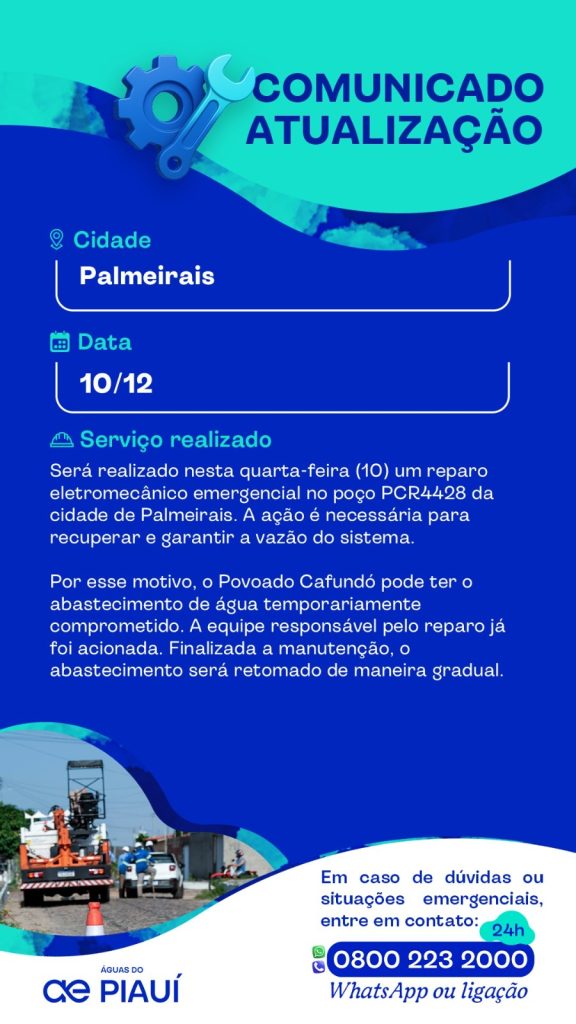A Águas do Piauí trabalha 24h por dia para ampliar e melhorar o saneamento na cidade de Palhoça.